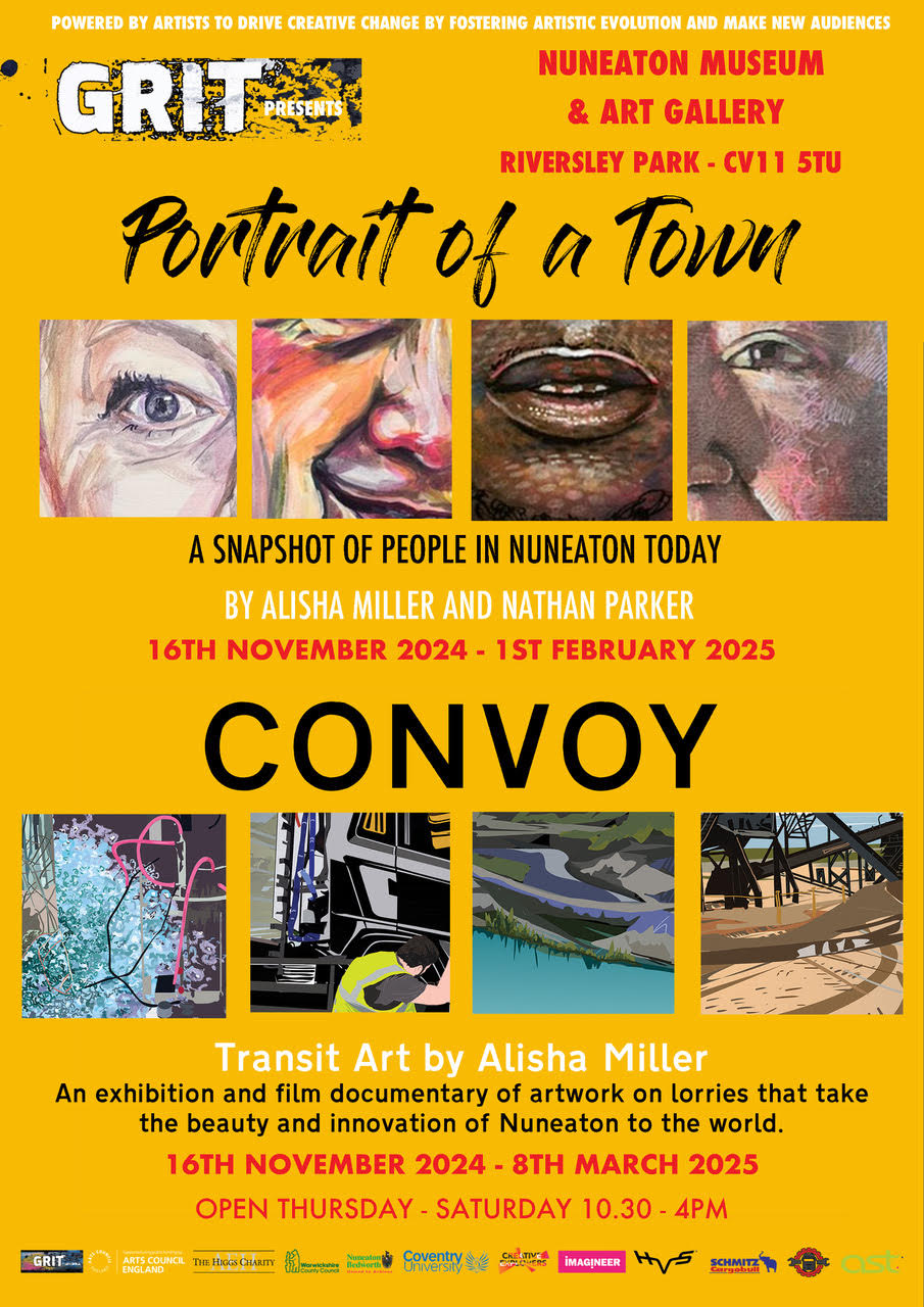 GRIT Art Central’s latest exhibitions Portrait of a Town and Convoy. Head over to Nuneaton’s Museum and Art Gallery from 16th November! Find out more.